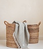 asgroen met visgraat patroon en naturelkleurige franjes
